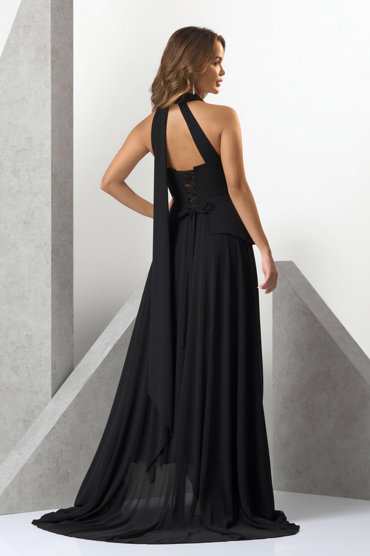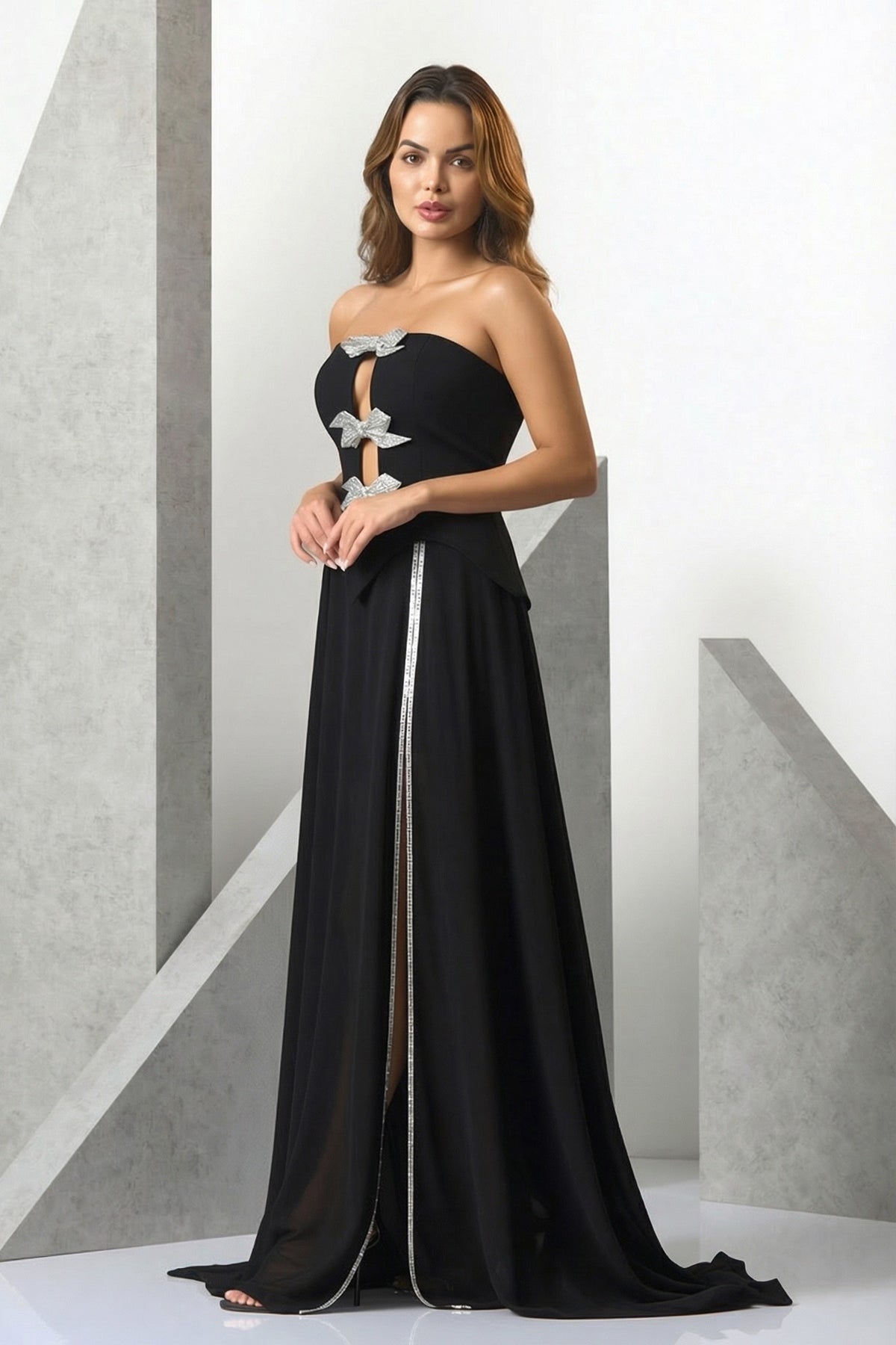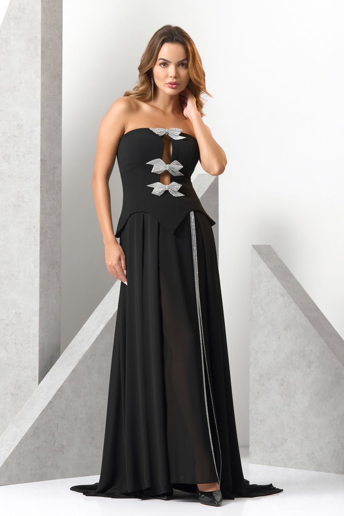 מחוך קרפ מחטב פפיון קריסטלים חצאית שיפון