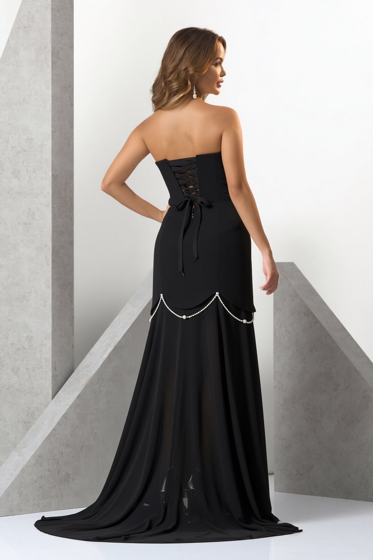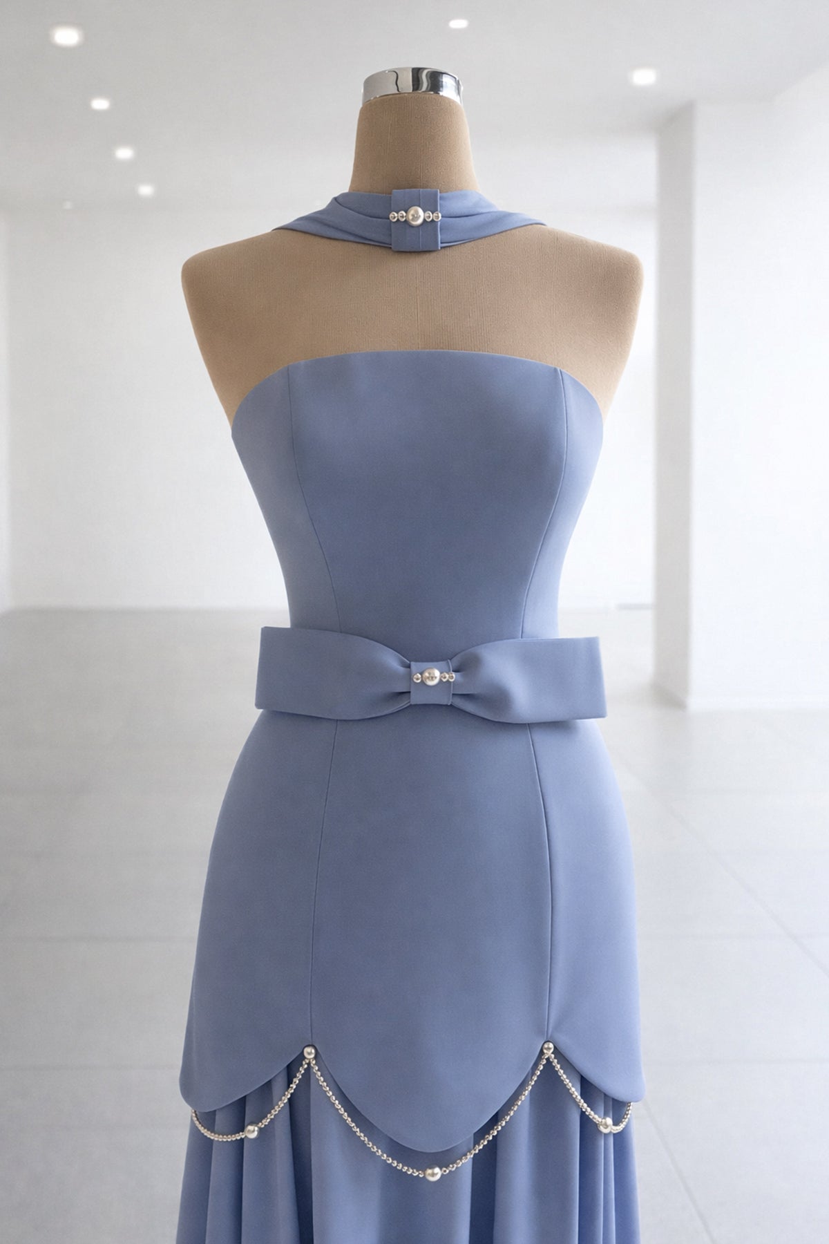 מחוך קרפ מחטב שרשראות פנינים חצאית שיפון